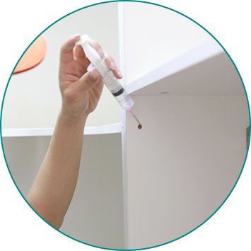 工程師著荃芬工服,出示荃芬授權(quán)書(shū),展示檢測(cè)設(shè)備(日本ASP-1200或S-27型甲醛檢測(cè)儀),同時(shí)搭配710/710A檢測(cè)管。