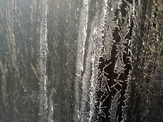 為了向大家展示荃芬產(chǎn)品形成的白色結(jié)晶,小編在黑色的板材上噴涂了大量荃芬甲醛清除劑,如圖所示的白色結(jié)晶正是發(fā)揮強(qiáng)大作用的、寶貴的氨基高分子聚合物。(PS:荃芬的產(chǎn)品禁止噴涂在不吸水的金屬表面以及深色的家具表面,所以,在正式施工中,使用荃芬甲醛清除劑不會(huì)影響家具的美觀。)