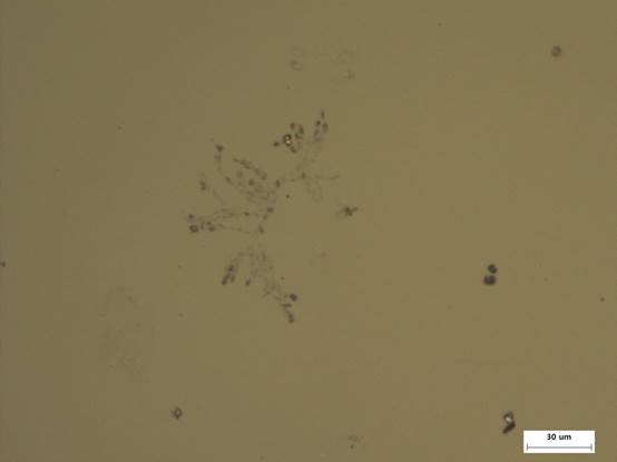 把荃芬甲醛清除劑放在30微米的顯微鏡下面觀察,會(huì)看到產(chǎn)品呈現(xiàn)出一種精美的雪花狀結(jié)構(gòu)。