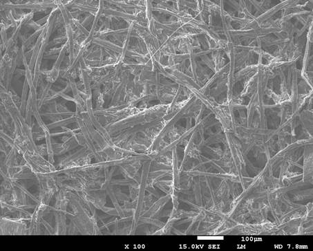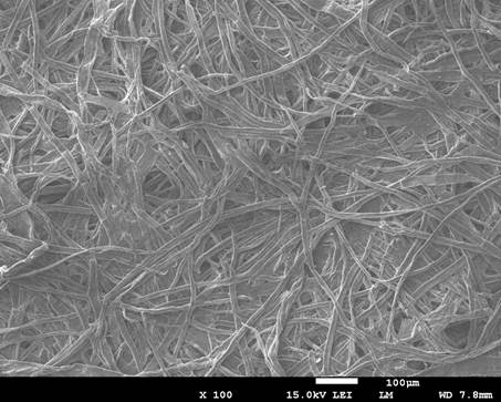 上圖是在100倍顯微鏡下,未噴涂荃芬產(chǎn)品的普通紙張微觀圖。