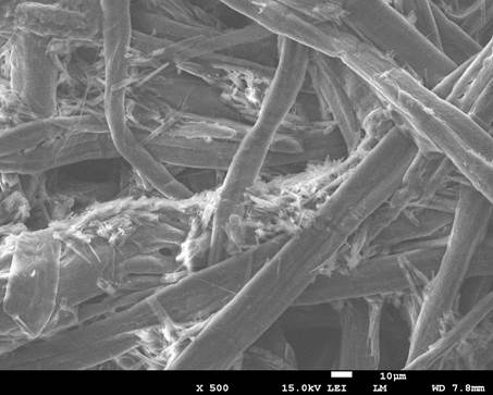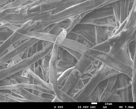 上圖是在500倍顯微鏡下,未噴涂荃芬產(chǎn)品的紙張微觀圖。