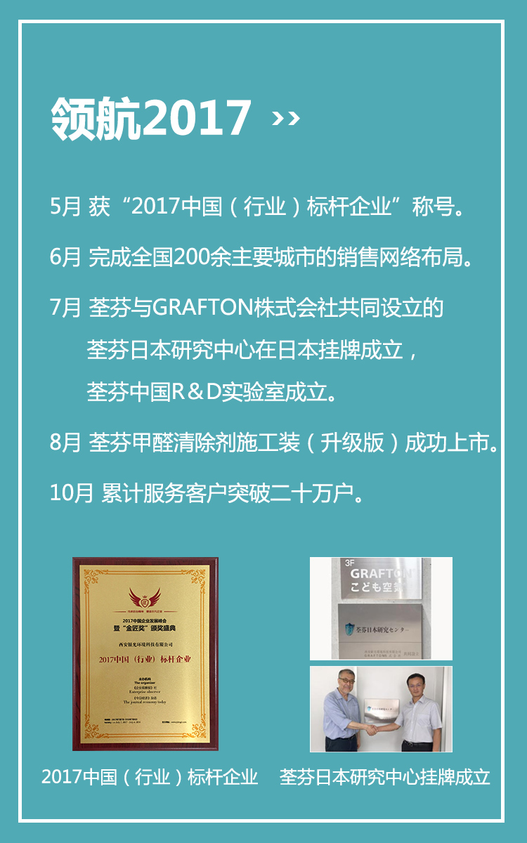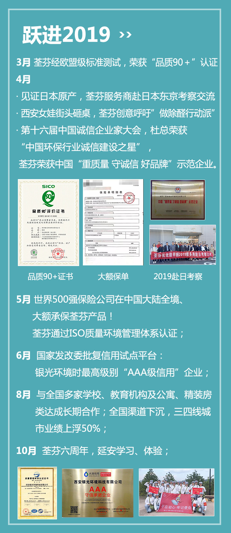 在除甲醛行業(yè)里,荃芬走著一條屬于自己的路?;仡欉@一路,荃芬從創(chuàng)辦,經(jīng)歷涅槃之蛻變,到規(guī)?;瘔汛?/span>......荃芬用六年扎扎實(shí)實(shí)的“發(fā)展業(yè)績(jī)”,塑造了如今“踏實(shí)、穩(wěn)健發(fā)展的荃芬”。