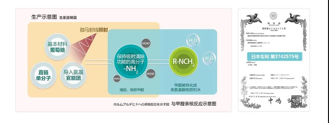 對于荃芬除甲醛的認(rèn)識,他總結(jié):第一個優(yōu)勢就是“長效”,產(chǎn)品有效性可持續(xù)19年(根據(jù)日本環(huán)境研究株式會社的實驗報告顯示)。日本GRAFTON株式會社原液進(jìn)口,產(chǎn)品原料是以葡萄糖為主,經(jīng)過伽馬射線照射生成穩(wěn)定的氨基高分子聚合物,捕捉、吸附空氣中的甲醛,并與其反應(yīng)生成類氨基酸物質(zhì)與水,不產(chǎn)生任何有害物質(zhì),安全性通過日本生物科學(xué)中心檢測,除醛反應(yīng)技術(shù)取得日本國專利(專利第3742575號)。再次是高效,經(jīng)日本環(huán)境研究株式會社測試:1g可高效清除30.1mg甲醛。