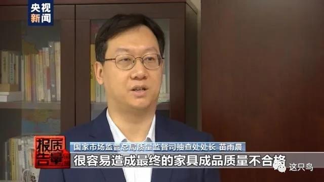 國家市場監(jiān)管總局質(zhì)量監(jiān)督司抽查處處長 苗雨晨:企業(yè)的大部分原材料依靠外購,如果原材料質(zhì)量把關(guān)不嚴,很容易導(dǎo)致最終的家具產(chǎn)品質(zhì)量不合格。比如使用了甲醛含量高的人造板,可能會造成家具產(chǎn)品甲醛超標,使用了不滿足要求的油漆,會造成家具的漆膜理化性能不合格。