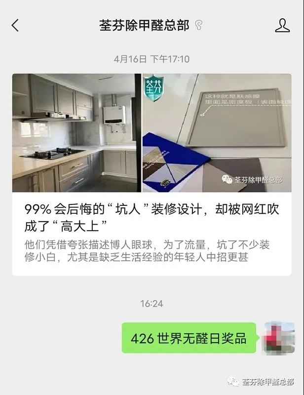 第二步:公眾號對話留言回復關鍵字“426世界無醛日獎品”